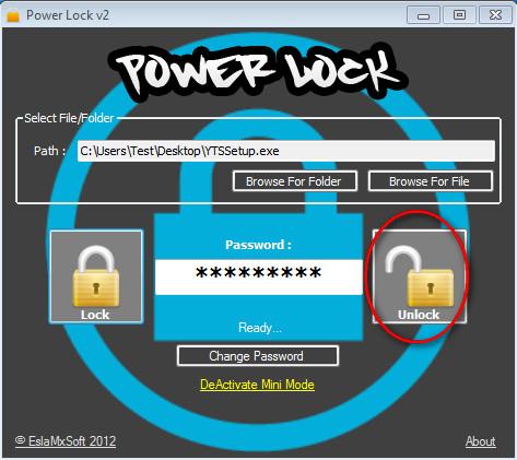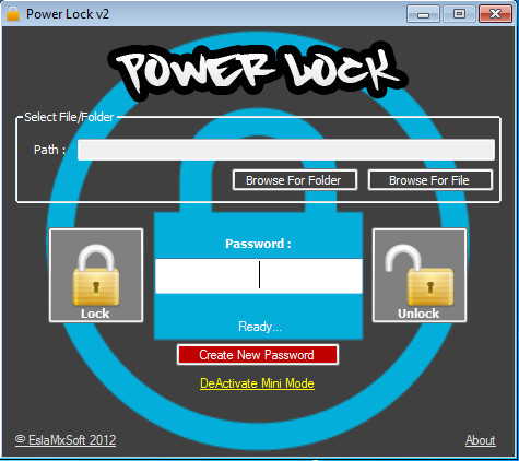 To start encrypting files and folders you’re gonna have to load them into the program by either clicking on the Browse For Folder or Browse For File buttons:If you have a lot of files that you want to encrypt then it’s best that you put them all into one folder and add protection to them altogether instead of doing it one by one. Next thing that you have to do, after you’ve loaded data that you want to protect, you need to enter a password that you want to use. This is the reason why the password filed is present right away after starting the application. Once that you have all the files and folders loaded, you can click on Lock which will protect your data.